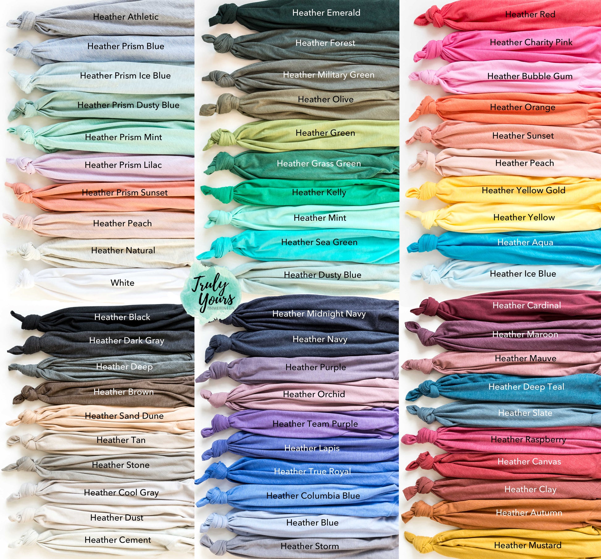 • We use ultra soft, heathered and solid Bella + Canvas shirts in a variety of colors.